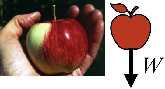 The force of gravity on an object is called its weight. On Earth, the weight always points downward. The SI unit of force is the Newton (abbreviated as N, and named after Isaac Newton). We often represent forces with an arrow indicating the direction of the force, with a label indicating its strength (or "magnitude").