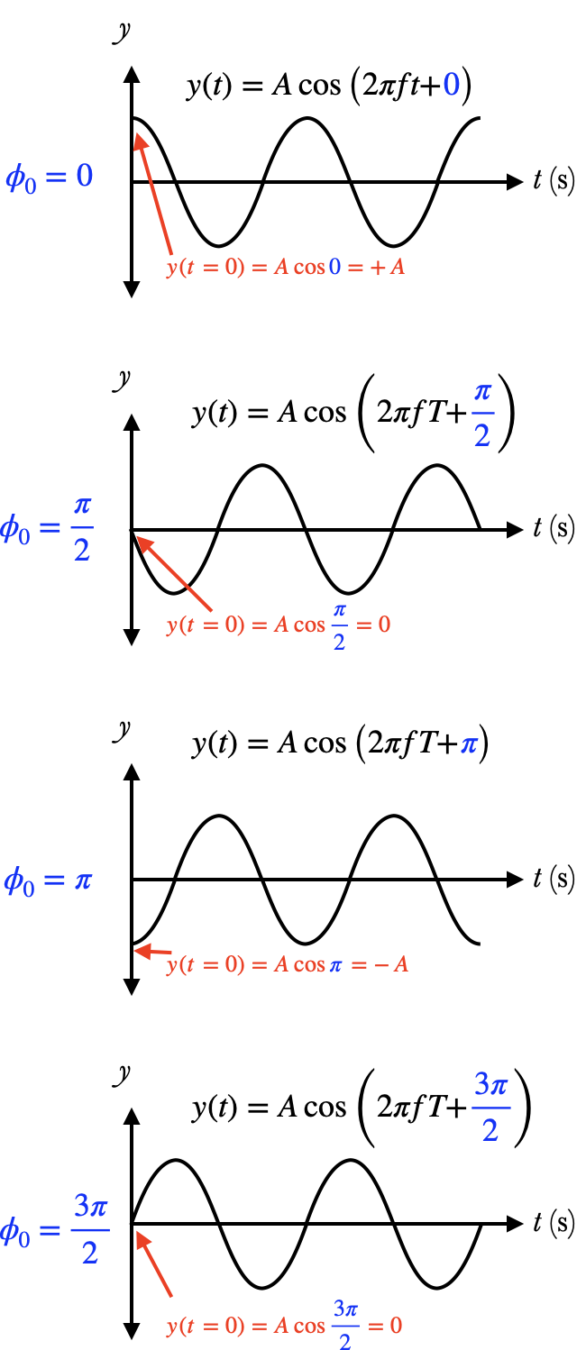 - If the displacement is at its maximum at $t=0$, then $\phi_0=0$